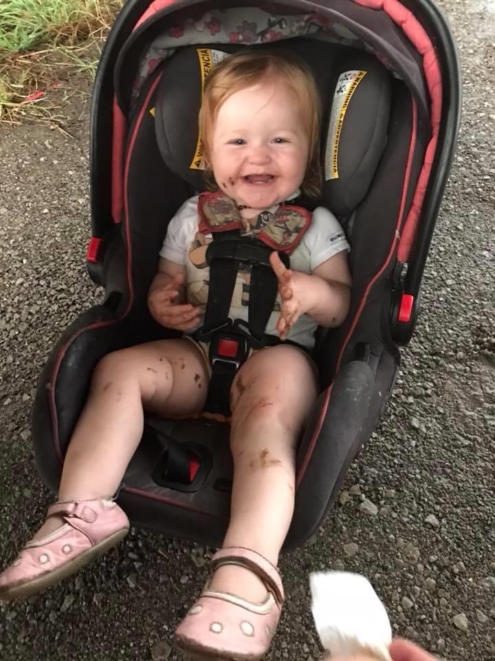 AND, because we were on a trip, we had to clean the seat with baby wipes, then line the seat with baby blankets and just make it home.