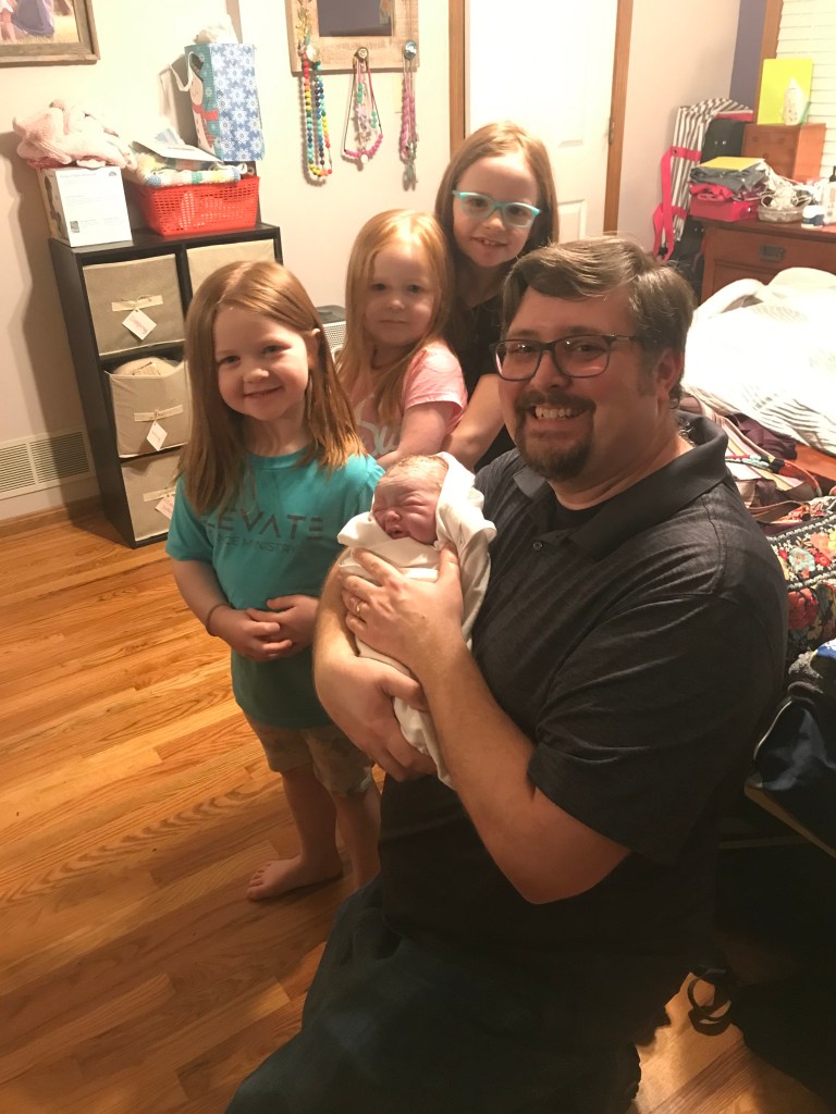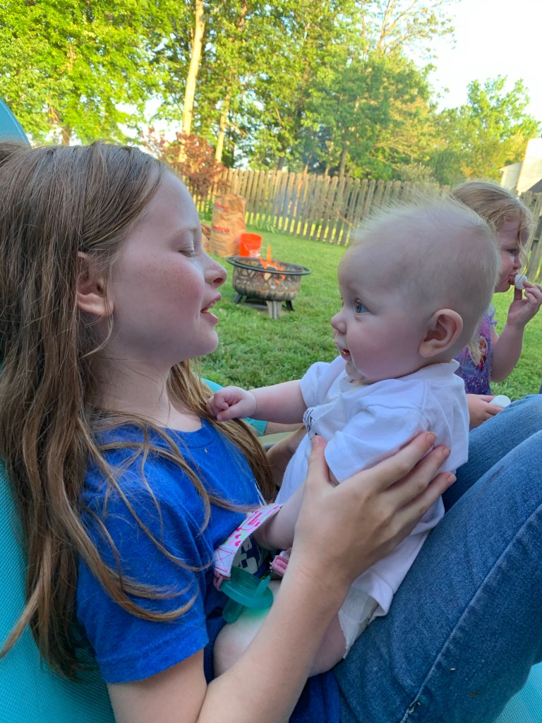 I look at her, and my girls say, “mommy had the baby!”