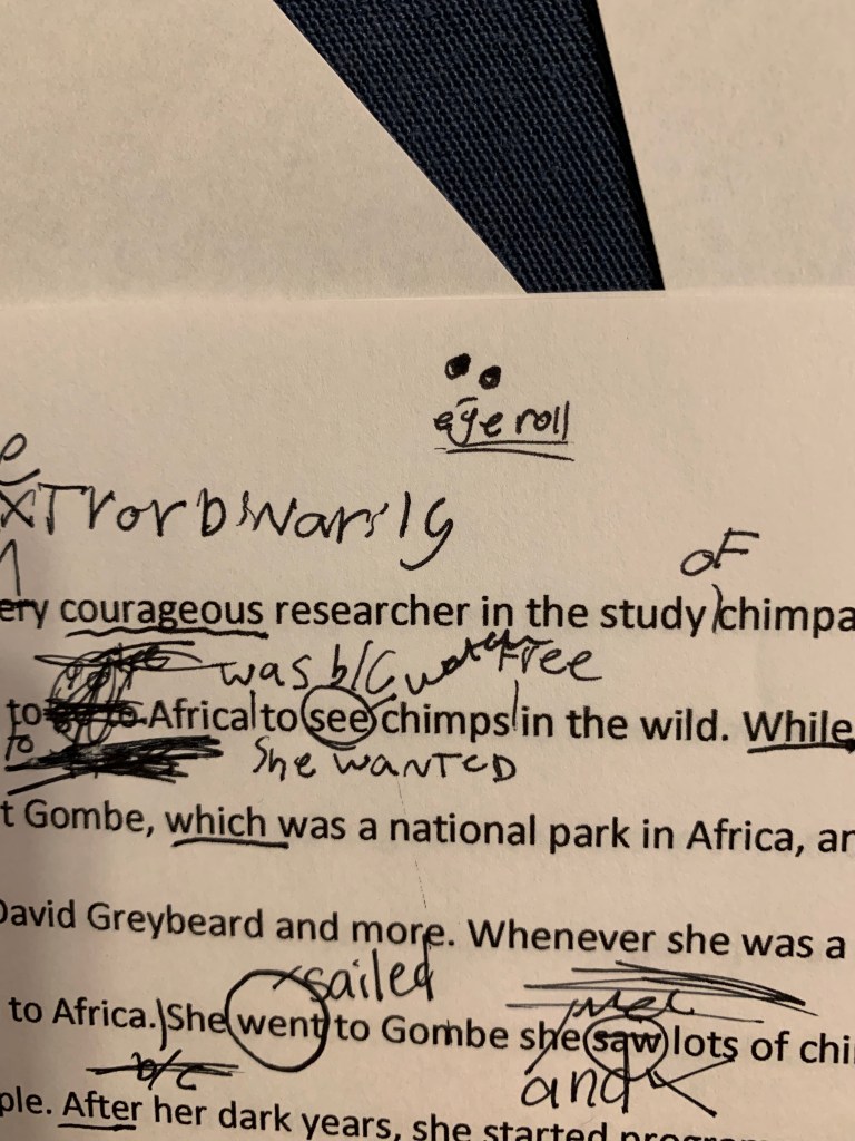 She chose Jane Goodall as her subject and has written a great paper about her life.