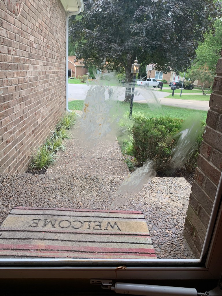 I’m sitting there wondering what is actually transpiring – because I can hear her, but I can’t see what is taking place around the wall separating our living room and our kitchen.